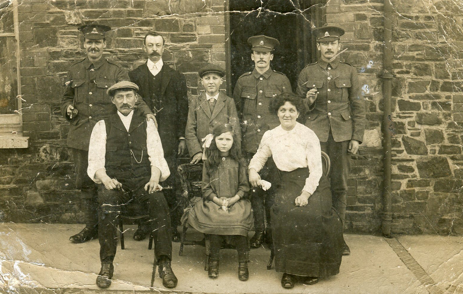 This is a picture of my grandparents outside their home, 60 Northfield Road in Okehampton. Sitting is John Walmesley and Bertha Walmesley the little gril is my Aunt Freda and standing behind her is my Dad Leonard Walmesley.